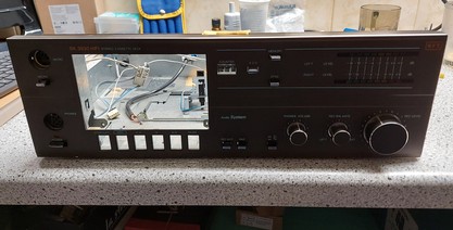 So, ich habe das Deck geöffnet, um die Funktion der verbleibenden Baugruppen und Teile nochmal zu überprüfen. Im Deck verbleiben lediglich alle Potentiometer, Schalter, LED´s, der Anzeigebaustein und der Kopfhörerverstärker einschließlich der dazu gehörenden Anschlussleitungen. Und natürlich der Tastensatz vom Laufwerk. Der Rest geht erst einmal als Ersatzteile in den Schrank. Dann werden die restlichen Komponenten entfernt.