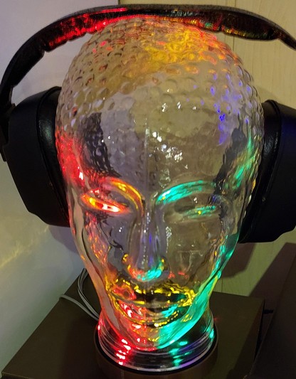 Eigentlich gefällt mir der Fuß so ganz gut. Ich werde es bei dieser Form belassen und der Lichtorgel ein eigenes Gehäuse spendieren. Das lässt sich dann auch besser mit dem zweiten Glaskopf realisieren. Die Anschlüsse der Glasköpfe an die Lichtorgel habe ich über RJ45 Buchsen und entsprechende Netzwerkkabel realisiert. Jetzt kann man das Ganze auch mal problemlos trennen.