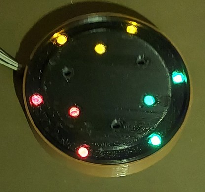 Ich musste jetzt erst einmal den Sockel für den "Nischel" konstruieren. Welche Anordnung der LED´s ist am besten geeignet? Ich habe mich dazu entschlossen, je 2 LED´s pro Kanal unter den Rand zu positionieren. Dann noch mal 2 im inneren des Glaskopfes. Das sollte zum Testen erst einmal ausreichen. Das sieht dann so aus.